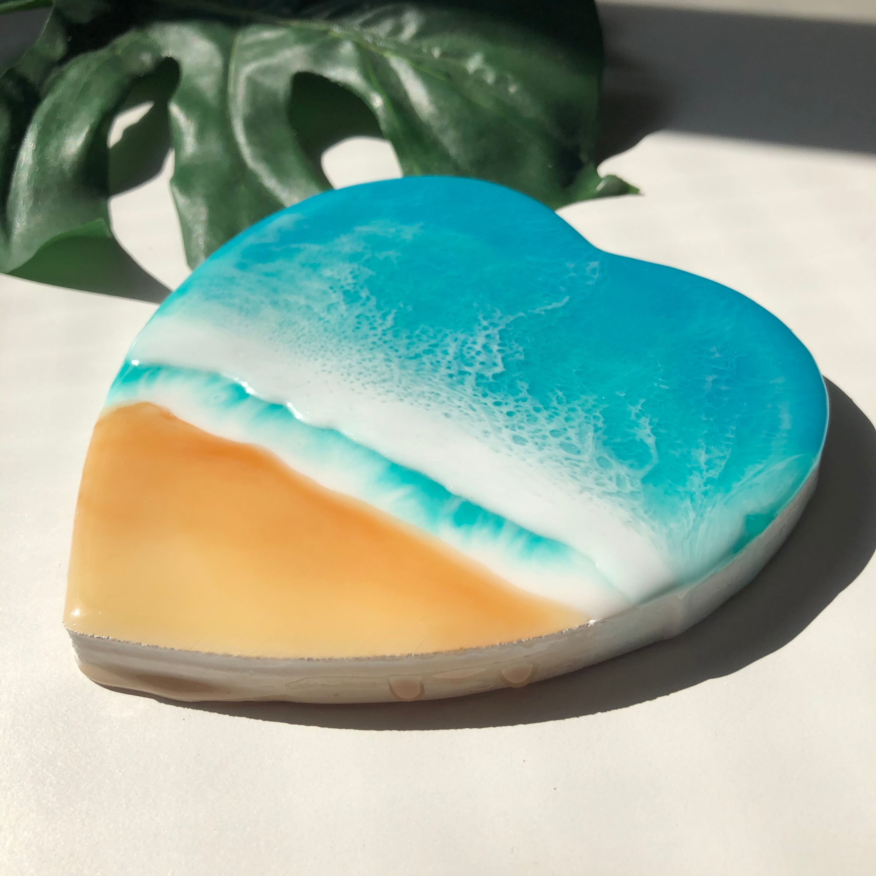 【13cm×13cm】ワイキキビーチを意識したハートプレート (S)